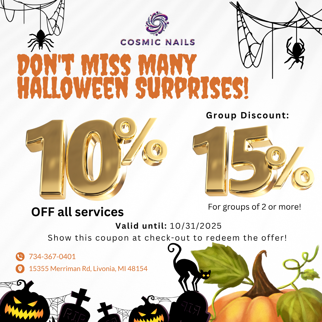 Cosmic Nails is located conveniently in Livonia, MI 48154. With a lovely and comfortable space would help you relax after a long working day.